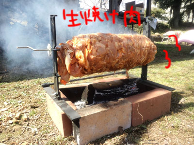 肉はケバブ肉を8キロ仕入れ、肉焼き機は日曜大工してる人から買い代用w