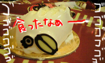 目と口と足はチョコ、中身はおっさn・・・ではなくチーズのムースケーキみたい。