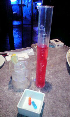 確か酒のグラスとかがビーカーとか試験管とかに入ってるのが面白いですよね