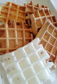 自分へのご褒美として、ワッフル機買いました♪ 白いたい焼きも作りました♪