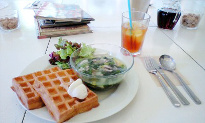 ワッフル、野菜スープ、サラダ、ドリンクのランチセット900円♪♪
