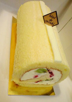 左がフルーツたっぷりのロールケーキ。