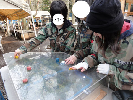 ゲームは旗を取り合う「フラッグ戦」。 チームに別れ敵を殲滅させて勝敗を決める「殲滅戦」をやった。