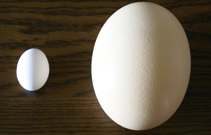 (殻の厚さ 鶏卵400μm、ダチョウ2mm。鶏卵の約5倍w)