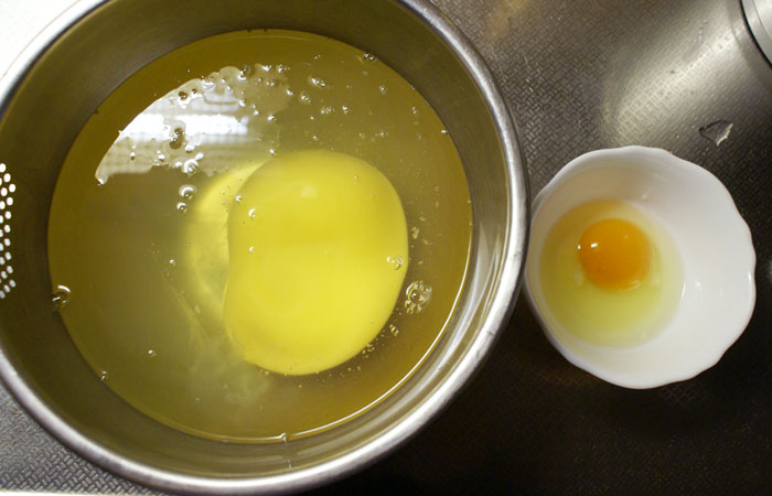 (左が普通の鶏卵)