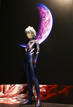 まずお目見えしたのは、アスカとレイの等身大人形! ちっさ!!!!!! でも高さは150cmくらいある・・・ そんなもんかっつ 身長だけ見たら大きく感じるけど、実際見ると 足長いし、頭小さいし、細いからすごく小さく見えるっつ うーん。なんか腑に落ちないTT